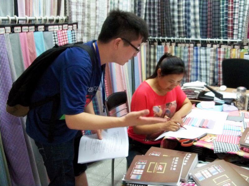 在下午的轻纺城市场法律调研活动中,调研小组的同学根据市场内部的布局划分进行了分工。由于夏季为纺织市场的淡季,所以整个市场里采购商人数并不是很多,这也为我们展开采访活动提供了便利。调研小组的同学有负责发放问卷的,有负责采访的,也有负责拍照的,分工合作,大大提高了效率。在采访活动中,我们从市场治安人员口中了解到,柯桥轻纺城市场的设立吸引了大量的境内外采购商前来,推动了经济的发展。与此同时,我们也有幸对市场内某商家负责人进行了深度采访,并了解到轻纺城市场的建设对经济发展确实有极大的推动作用,但是存在的不足也是很明显的,比如民间投资较多,市场多而分散,政府缺乏有效的统一管理,加上市场内部机制的不完善,限制了市场的综合实力。