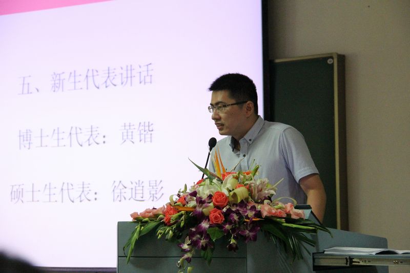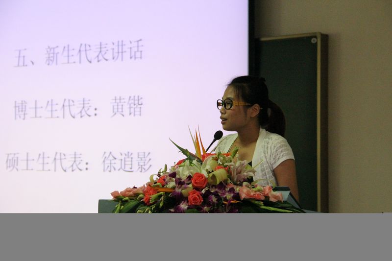 继而,博士生新生代表黄锴与硕士生代表徐逍影先后发言。黄锴同学回顾了自己在浙江大学的6年求学生涯,将其视为人生中最精彩的一段时光。他不断反思竺可桢校长的两个经典问题,提出自己的独特解答,并将成为一名诚实、自由、有经验并优雅的人作为人生的目标。他也表示,在面临挑战和挫折时应当始终坚信超越自己,完善自己,为成为一名法律人坚持不懈地努力,最后他对始终帮助自己的老师和同学表达了感谢之情。徐逍影同学表示对浙江大学慕名已久,来校之初便感受到了光华法学院浓厚的学术氛围和严谨的治学态度,她相信接下来学习之路虽然艰辛,但必将成为人生中的精彩华章。