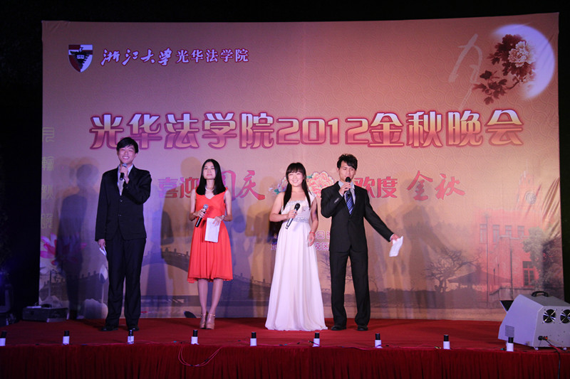 9月26日晚,光华法学院2012金秋晚会在浙大之江校区主楼前草坪成功举办。满园桂花香的时节,师生欢聚一堂,共度美好时光。光华法学院常务副院长朱新力,光华法学院党委书记、之江校区党工委书记、管委会主任胡炜,光华法学院党委副书记吴勇敏,光华法学院院长助理胡铭,图书馆馆长何灵巧等领导和周江洪、兰荣杰、陈旭琴、王书剑、常姗等老师参加了本次晚会。