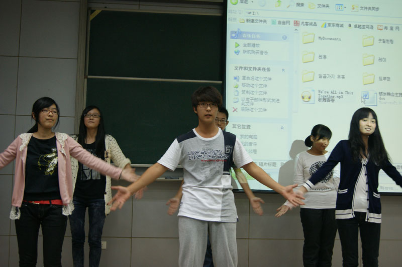 紧接的是各部门介绍,有统筹的主席团、激情的外联部、朴实的秘书处、活跃的宣广、热情的法援、严谨的学术研究中心、务实的素拓以及敏捷的口思。在这一环节中,台上部长和台下干事们的互动使大家深深体会到集体的团结。随后,由各部门带来的节目将破冰活动推向了高潮,各个部门、同学各出奇招,各尽其能,让在场所有观众都好好享受了一场视觉盛宴。其间丰富的游戏也把全场气氛推向一个又一个高潮,大家笑声不断,欢乐不止。最后,陈嘉龙学长高歌一曲《兄弟无数》为整个破冰大会画上了完美的句号。