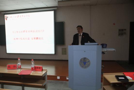 针对法学院学生的就业特点,会议特别安排了杭州中院政治部张雁鹏处长和泽大律师事务所合伙人郭筹鸿律师分别为为同学们作了《公务员招聘要求和面试技巧》和《律师事务所招聘要求和面试技巧》的专题讲座。两位嘉宾分别从公务员和律师的职业特征出发为大家具体介绍了求职中的技巧和要求。