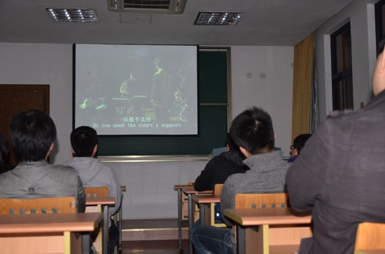 2012年11月9日19:00整,浙江大学青年马克思主义者(学生骨干)培养学院光华法学院分院的学员们在之江校区7号楼201举行了交流会。青马学员们首先观看了《马背上的法庭》这部影片。其讲述了五十几岁的法官老冯,即将因政策变动而离开工作岗位的摩梭族书记员杨阿姨,第一次下乡参加马背巡回法庭的彝族大学生阿洛三人在云南西北蜿蜒的红土路上沿路开设法庭的故事。故事的最后,阿洛带着新娘子逃跑了,背叛了这条在他看来没有前途和希望的路;退休的杨阿姨留在寨子里了,失去了相濡以沫的伙伴;忽然衰老的老冯一个人走上了那条孤独的路,再也没有回来……