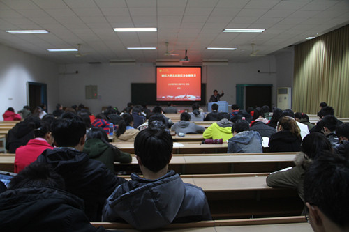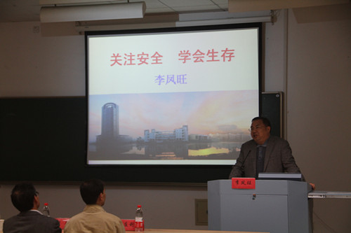 接下来,伴随着同学的热烈掌声,校保卫处处长李凤旺开始了以“关注安全 学会生存”为主题的安全教育讲座。李处长以“忆往事”的形式,带领同学们回顾了近年来所发生的令人惋惜的校园安全事故。远至上海商学院大火事件、近到我校某毕业生意外溺水等事件,无不深深吸引住了在场同学们。李处长的展示使同学们融入了整个讲座主题的氛围之中。 在随后的讲授中,李处长分别从“国家安全、治安安全、消防安全、交通安全”四个维度进一步阐明安全防范的具体措施,每一个层面都辅之以相应案例生动地阐述了安全的重要性。李处长更是根据自己多年校园保卫经验,嘱托各位在场的法科生们认真学习自救他救的方法,有效保护个人和周边安全。最让同学们深感温馨的是李处长还表示之江学生如果晚归上山可以致电保卫处给予护送。在李处长严谨而又不失生动、关怀的讲座中,在场的的同学们都接受了一场安全教育的洗礼。