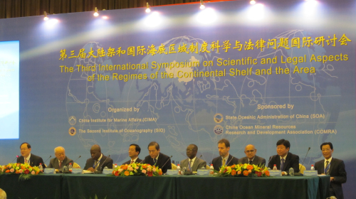 2012年11月22日-23日,国家海洋局海洋发展战略研究所和国家海洋局第二海洋研究所共同主办的第三届大陆架和国际海底区域制度科学与法律问题国际研讨会在京召开。中国国家海洋局副局长陈连增、外交部条法司司长黄惠康出席开幕式并致辞。