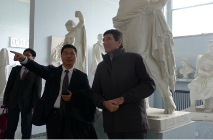 此次出访的罗马一大建立于1303年,是意大利最大的国立大学,教师3979人,学生135000人,教职工4386人,图书馆藏书92200册;学校拥有11个学院,66个系,37个研究中心,122个图书馆,21个博物馆和2个附属医院。马西尼副校长热情接待了代表团的来访,座谈会上他向代表团介绍了罗马一大的整体发展情况,并重点介绍了学校的科研情况,以及法学学科、经济学科、政治学科、教育学科和考古学科的研究发展情况;罗卫东副校长对马西尼副校长的接待表示感谢,代表学校向与会的罗马一大代表介绍了浙江大学的整体情况,有针对性地提出了两校未来可深化合作的领域以及机制,他还特别指出意大利是现代考古和文博学科的发源地,罗马一大在文化遗产研究和保护、科技考古、博物馆建设等领域都处于世界领先地位,在该领域的人才培养和学科建设上也有着丰富的经验值得我校借鉴和学习;双方最终确定了两校文科展开全面合作的意向,达成了进一步拓展学生互换、教师交流互访的共识,并就双方考古与文化遗产保护领域的合作进行了深入的探讨。座谈会上,代表团的各位代表还与罗马一大相关学科的教授进行定点交流,并达成相关学科的合作研究和教师互访的意向。会后,马西尼副校长亲自陪同代表团参观了该校用于通识教育的教学博物馆——石膏博物馆。