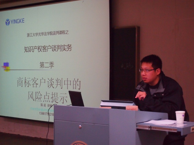 知识产权在近年来愈来愈受到大家的重视,相关的法律服务也是得到了很多企业的青睐。2012年12月10日,北京盈科(上海)律师事务所陈晨律师、王欣桐律师作客光华法学院,为大家带来了一场名为“知识产权法律谈判实务”的专题讲座,向在场的诸位介绍了知识产权法律谈判方面的技巧以及对商标等知识产权的保护策略。