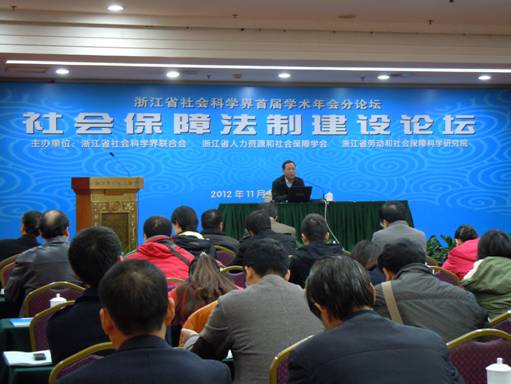 11月30日,我院陈信勇教授应邀参加了在杭州举行,由浙江省社会科学界联合会、浙江省人力资源和社会保障学会、浙江省劳动和社会保障科学研究院联合主办的浙江省社会科学界首届学术年会分论坛——社会保障法制建设论坛。陈信勇教授作为主讲人之一在论坛上作了题为《社会保险法的主要制度创新和展望》的主题发言。