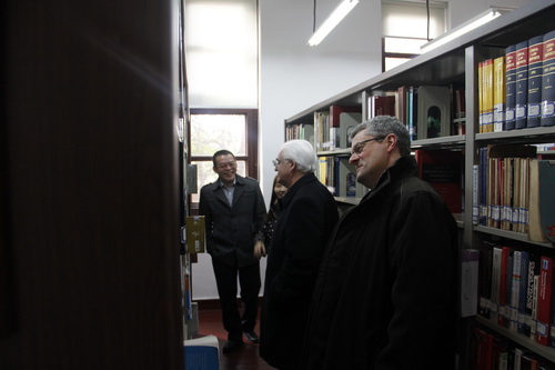 Mark Poustie教授、Anthony McGrew教授一行人首先在常姗老师的陪同下参观我院图书馆。