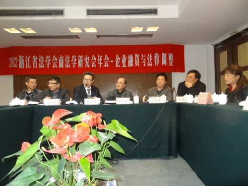 浙江省法学会商法学研究会主办的2012年会暨“企业融资与法律调整”于2012年12月1日在杭州之江饭店召开。来自省内高等学校、企业、公检法机关、律师事务所等近60名专家、学者、实务界人士齐聚一堂,围绕企业融资与法律调整的意义、民间融资的法律规制、民营企业的融资结构及对外投资的风险控制、私募股权基金在我国企业海外投资中的角色与作用等内容展开。浙江省法学会副会长牛太升、浙江大学光华法学院吴勇敏老师、陈信勇老师、赵骏老师、温州市人民检察院检察长林越坚、台州市工商行政管理局局长杨财标、中国计量学院教授邢造宇、浙江星韵律师事务所吴清旺、唐炳洪等出席会议。