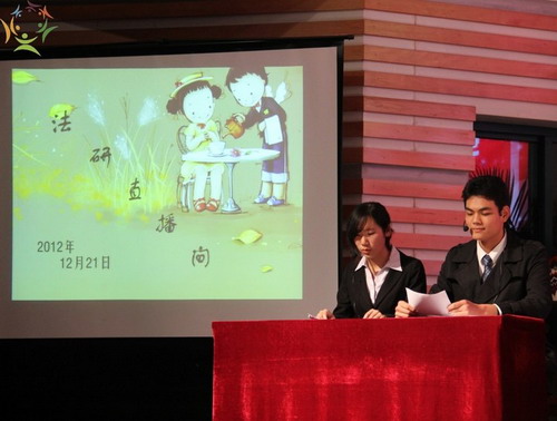 闭幕式伊始,社团联首先播放了一段由他们自己拍摄并制作的一段视频,情节感人至深,让在场的同学都深深感受到了作为一个社团人的自豪。本次闭幕式除了是文化节的闭幕,更是一场颁奖典礼。随后,在主持人风趣幽默地介绍之后,重头戏正式开始。我院法学研究会以“法研直播间”的形式展现了自己社团的风采。