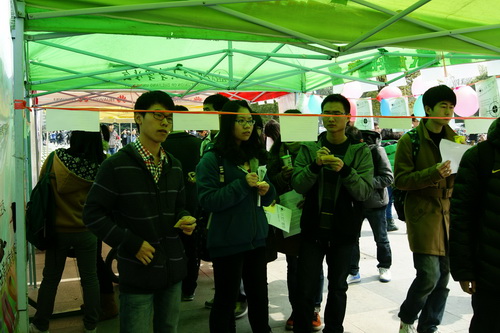 活动当日,学生法学研究会在紫金港校区文化广场现场设立了有奖竞答环节,即通过回答挂在帐篷内的问题卡片来获取相应的奖品。除此之外,活动当天还设有“吐槽”节目,即在文广的帐篷前设有学校各大学园的店铺分布图,同学们可以将自己对店铺的想法用便利贴写在上面。