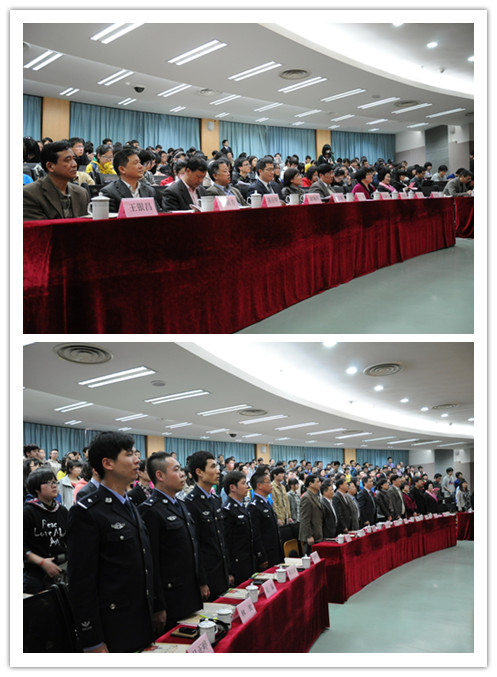 2013年4月12日下午,浙江大学第十二届法文化月开幕式暨光华法学院常务副院长朱新力教授“法治政府的中国之路”讲座在紫金港校区国际会议中心138室隆重举行。出席本次开幕式的校外嘉宾有西湖区人民法院党组副书记、常务副院长叶丽、办公室主任钱让发,西湖区司法局副局长王银昌,杭州求是教育集团党总支副书记、副总校长朱国敏,浙江省未成年劳动教养人员管理所教研中心主任张增富、团委副书记陈日星一行五人;学校领导和嘉宾有浙江大学副校长兼光华法学院院长罗卫东,党委学工部部长金海燕,党委研工部部长吕淼华,就业指导与服务中心主任陈谷纲,校团委书记刘艳辉,党委宣传部副部长彭凤仪;学院领导有光华法学院常务副院长朱新力,学院党委书记、之江校区党工委书记、管委会主任胡炜,副院长梁上上,党委副书记吴卫华;参加会议的其他老师还有求是学院丹青学园团委副书记卢志强,光华法学院团委书记陆飞华,团委副书记王书剑等。场内座无虚席,200余名学生参加了本次开幕式。