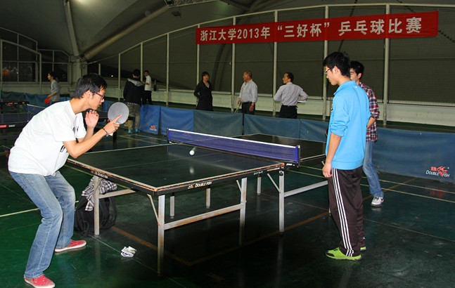 2013年4月12日-14日,浙江大学2013年“三好杯”本科生乒乓球赛在紫金港校区风雨操场乒乓球馆举行。来自全校各院系的24支队伍,250余名运动员参赛。本次比赛设男团、女团、男单、女单、男双、女双、混双七个项目。我院派出了一支由7名队员组成的参赛队伍,队员们在比赛中团结协作,努力应战,获得了团体总分第八,女团第四的好成绩。