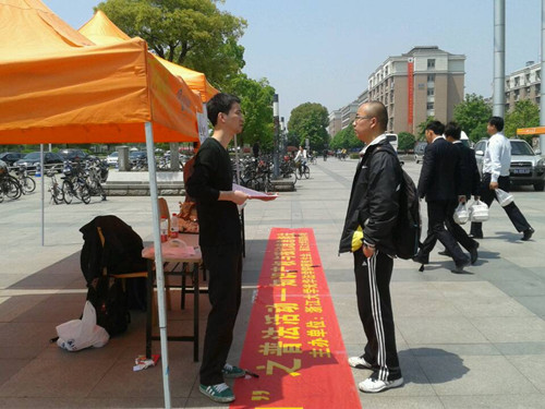 4月26日是世界知识产权日,在理工科背景浓厚的浙江大学,了解知识产权法和增强知识产权意识显得尤为重要。为了让浙江大学学子了解知识产权法的重要性,提高大家的法律知识水平,浙江大学光华法学院研究生会、学生会和浙江大学清源学社在紫金港文化广场共同举办了这次普法活动。本次活动由知识产权专业的何怀文老师带队,知识产权专业的研究生共同参与。