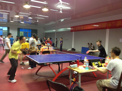 5月18日下午,进行男单、女单、男双、女双及混双项目的比赛。首先是混双,由金幼芳、施旺泉对阵计算机学院,经过激烈的角逐,以2:1出线小组赛,后又经过两轮激烈的角逐,分别对阵机械学院、计算机学院,最终获得第四名。在女双的比赛项目中,我院队员发扬团结合作精神,互相激励,最终陆景仪、赵晨获得女双第七名,王杰、周杰获得女双第八名。接下来是男单、女单比赛,同学们沉着应战,可惜连遇强敌,在接下来的男双比赛中,我院张坚帅、向淼互相鼓励、配合默契,打出精彩的回合,最终获得男双第二名的好成绩。