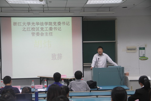 2013年5月17日下午,浙江大学第十二届法文化月闭幕式暨全真模拟法庭决赛在东二104教室隆重拉开帷幕。出席本次闭幕式的有浙江大学光华法学院党委书记、之江校区党工委书记、管委会主任胡炜,光华法学院兰荣杰老师,学院团委书记陆飞华,学院团委副书记王书剑。