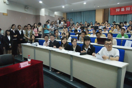 院团委书记陆飞华老师出席了此次比赛并为之致辞,同时2010级口思辩论队杰出辩手作为评委友情出席了此次比赛。在主持人风趣幽默的开场白后,辩论赛正式开始。在正方慷慨激昂、反方充满理性色彩的自我介绍后比赛进入开篇立论环节。正方辩手们凭借精辟的措辞、犀利的言语,展现出咄咄逼人的气势。而反方辩手也毫不示弱,抓住正方的语词漏洞用数据加以还击。与激烈的舌战同时雷动全场的是观众席上不断传来的阵阵掌声。随后的攻辩环节中双方更是争锋相对、步步紧逼,使现场气氛迅速升温达到白热化状态。比赛继续进行,进入自由辩论环节。赛场气氛紧张激烈,双方辩手针锋相对,唇枪舌剑,你来我往却又不失风度,侃侃而谈展现辩论风采。良好的风范、出色的口才、敏捷的思维令场下观众为之折服,掌声不断。在这种热烈气氛的感染下,提问环节也是精彩不断。最后比赛以复旦方的胜利告终。来自复旦方的二辩荣获最佳辩手的称号。