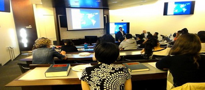 其后,两位教授赴康奈尔大学法学院,与法学院院长Stewart J. Schwab教授、副院长Laura Spitz教授、副院长Barbara Holden-Smith教授、John J. Barceló 教授等商谈合作事宜,双方表达了两院长期合作的强烈愿望,并就部分合作事宜达成了一致。此外,赵骏副教授在Berger国际法项目的午宴上发表了题为“国际法治与中国法治的砥砺和互动”的学术报告,深受师生好评。