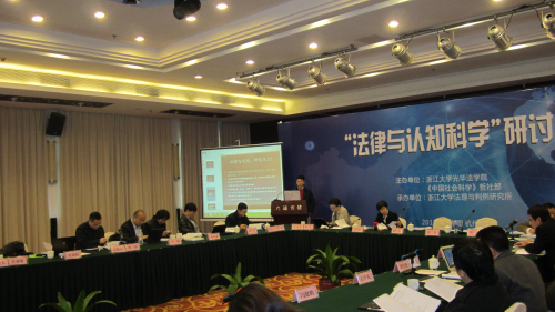 2013年11月16日,由浙江大学光华法学院、中国社会科学杂志社哲社部合办的“法律与认知科学”研讨会,在杭州六通宾馆顺利召开。来自美国加州大学、中国社会科学院、南京大学、清华大学、中山大学、中国政法大学、华中科技大学、上海交通大学、中国海洋大学、华南理工大学、杭州师范大学和浙江大学等各大高校和研究机构的近四十位海内外专家学者出席了会议。