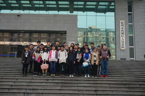 恰十八大三中全会结束不久,为探访司法审判权独立的影响,了解基层法院的工作氛围,也作为光华法学院学生会素质拓展培训计划SQTP项目的重要环节,11月23日的上午,在浙江大学光华法学院学生会组织下,二十多位法学专业学生,数位中国政法的交换生,和少数其他学院的研究生组队前往西湖区人民法院参观,交流。同学们怀着期待,带着问题踏上了行程。