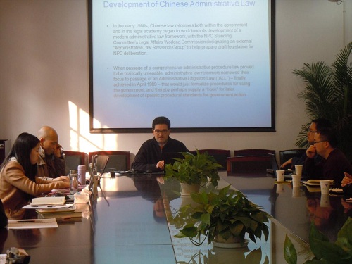 讲座当天虽然天气寒冷,但同学们依然早早地就到了。在同学们的期待中,马瑞欣博士开始了精彩的讲座。作为开场白,马瑞欣博士讲述了为什么对中国的法律制度感 兴趣,他提到自己在普林斯顿大学时开始学习中文,之后来到北京和江平老师相遇,与江平老师交流后,选择了行政诉讼法作为自己的研究方向。接下来切入主题, 马瑞欣博士开始讲述作为一个外国学者,他是如何为其他外国学者讲中国的行政法的,他还提到这是他第一次在中国讲述关于程序方面的观点。第一部分“Development of Chinese Administrative Law”,马瑞欣博士讲到,二十世纪八十年代中国开始对是否需要行政法立法进行考虑,继而根据别国的经验考虑我国是否也需要行政程序法。但当时程序法的想法被否定了,被肯定的是中国应该需要行政诉讼法。在80年 代,国家请学者们考虑中国需要什么样的诉讼法,得出的结论是中国也许可以根据德国的体例颁布一个法典,而且当时似乎已经有了一个草案,但是最终并没有颁 布。如今中国的行政强制法、许可法、诉讼法等都相继出台了,马瑞欣博士认为这也许是一个很好的“策略”,先出台行政诉讼法,树立一个标准,再相继出台程序 法等其他的法律。马瑞欣博士特别提到2004年中国行政法的学者们为人大法工委起草的一个行政程序法的草案,虽然之后这个草案没有在国家层面通过,但之后出台了依法行政实施纲要,这个纲要很大程度上反映了2004年那个草案的内容,甚至有人认为这个纲要就是具有行政程序法性质的文件。第二部分“‘Internal’Evaluation”,马瑞欣博士提到,2008年 湖南省开始根据依法行政实施纲要制定了一些关于行政程序的地方法规,当时中国的学者们想有没有可能由于地方上越来越多这种法规的制定继而对中央的立法带来 一定的压力。然而湖南省这个法规的实施情况实际上是不太好的,这样就有一种危险,那就是地方法规的失败让中央那些本来就反对行政程序法立法的人更容易找到 了反对的说辞。但换一个角度,若程序法在地方法规上实践成功了,他们又可能说既然地方上已经成功,那么中央也就不用颁布一个统一的程序法了,这些都是问 题。第三部分“‘External’Evaluation”,马瑞欣博士讲到美国的行政法学者很多都是由于认为中国行政法有趋向于美国体制的倾向而对中国的行政法发展感兴趣的,甚至认为中国可能通过一个像美国APA那样的法律。但马瑞欣博士并不同意,他认为从湖南省制定的地方性法规来看,还是比较有中国特色的。接着这个话题,在第四部分“Participation in Practice”中,马瑞欣博士认为美国学者在没有参加中国的司法实践的情况下,是很难理解中国的行政程序制度的。例如在美国最多的行政案件就是针对政府没有遵循“notice-and-comment rulemaking”程序,但在中国不是这样。中国没有像美国那样强力的社会组织,行政程序上的公众参与是很难落实的。“中国的问题可能很大程度上不是理论上的问题,而是实践上的问题”,马瑞欣教授如此总结。第五部分“Role of The FAZHIBAN”,马瑞欣博士特别提到了法制办在中国特色的法律制度中的作用。他认为,湖南省制定的行政程序的地方法规强调了法制办的作用是一个很大的进步,因为它是贴近中国现实的、从中国的实际出发的,与中国的传统与现状没有冲突。