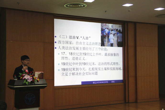 凛冽尽去,微风此时正暖;杨柳生烟,初阳三月高照。乘着两会召开的春风,浙江大学第十三届法文化月开幕式暨浙江大学光华法学院副院长胡铭教授“法治中国的理想及其践行”主题讲座于2014年4月11日下午两点在浙江大学紫金港校区国际会议中心138室隆重举行。出席本次开幕式的校外嘉宾有舟山市中级人民法院院长孙公幸、萧山市司法局局长瞿建成、杭州市西湖区司法局副局长张建忠、杭州市西湖区人民法院办公室主任钱让发、浙江省良渚强制隔离戒毒所团委副书记陈日星、民警董学锋、阳光时代律师事务所合伙人律师潘晓虹;学校领导和嘉宾有浙江大学副校长兼光华法学院院长罗卫东、浙江大学党委宣传部副处职调研员彭凤仪、浙江大学党委学生工作部副部长潘健、浙江大学党委研究生工作部副部长陈凯旋、浙江大学紫金港校区党工委副书记陈飞、浙江大学求是学院丹青学园党总支书记兼主任吴巨慧、浙江大学校团委副书记卢飞霞、浙江大学就业指导与服务中心就业调研部主任朱连忠;学院领导有光华法学院党委书记、之江校区党工委书记、管委会主任胡炜、光华法学院党委副书记吴勇敏、光华法学院党委副书记吴卫华、光华法学院副院长胡铭等。场内座无虚席,200余名学生参加了本次开幕式。