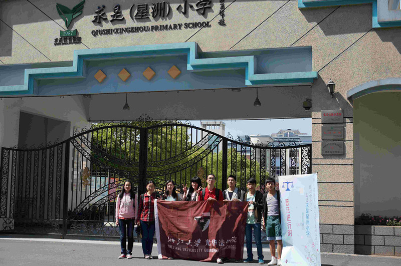 5月6日下午,来自浙江大学的10名志愿者来到杭州市求是(星洲)小学开展“小学普法”活动。求是(星洲)小学的五年级同学们以极高的热情迎接了志愿者们,并认真聆听了一堂生动精彩的法律普及课。