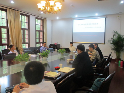 三位同学就各自论文的框架以及其中的重要部分向大家做了报告,从不同层面向大家表明了他们各自的学术观点。冯泽良同学的论文题为《重大资产重组信息披露制度评析——来自上市公司公告的证据》,论文从万好万家、新华传媒和创兴资源商家的公告内容入手,发现许多上市公司按照规定以30日为周期出的公告并没有实质参考意见,进而分析信息披露制度的有效性以及定期公告的问题,最后提出废除定期信息披露、加强行政处罚与司法救济以及可以进行列表式披露、举行投资者说明会等对策。李昕承同学的论题为《企业所得税免税重组中的利益持续性原则研究》,已经写书的他对于税务方面的问题有着自己的独到见解,所谓利益持续性最重要的还是区分免税重组与伪装的应税重组。就这一问题他详细研究了美国的相关立法史,并结合中国实际,对于存在的问题进行了深入的思考,提出相关对策。廖佩玉同学的论文《论私募股权投资者权利的配置——基于美国风险投资示范合同的分析》主要从比较法的视角分析问题,由美国看到中国,并结合国情分析我国的私募。从私募股权投资者权利科学配置的必要性和基本原则入手分析,进而提出完全借鉴优先类权利、选择性的配置特殊类权利、私募股权投资者权利的配套机制。