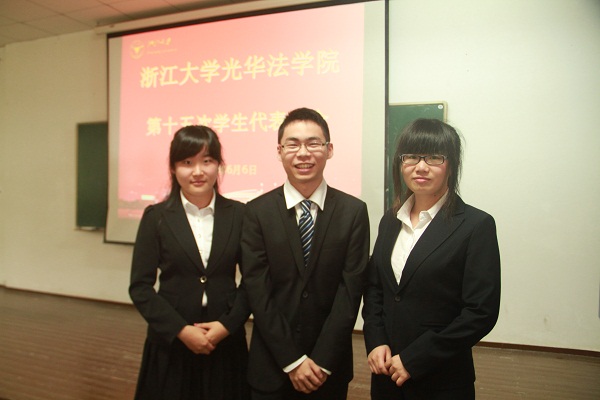 此后,大会进入审议阶段。大会审议通过了《浙江大学光华法学院第十五次学生代表大会主席团、秘书长名单》(草案)、《浙江法学光华法学院第十四届学生会主席团工作报告》(草案)、《浙江大学光华法学院学生会章程》(草案)、《浙江大学光华法学院第十五次学生代表大会主席团候选人名单》(草案)、《浙江大学光华法学院第十五届学生会主席团选举办法》(草案)。紧接着,学生会副主席李�宣布选举工作可以进行。