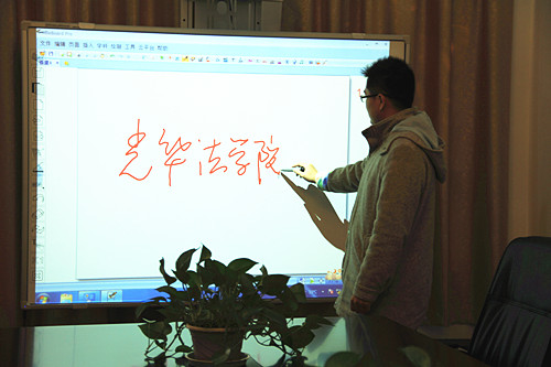 设备功能说明:交互式电子白板可以与电脑进行信息通讯,将电子白板连接到计算机,并利用投影机将计算机上的内容投影到电子白板屏幕上,在专门的应用程序的支持下,可以构造一个大屏幕、交互式的协作会议或教学环境。利用特定的定位笔代替鼠标在白板上进行操作,可以运行任何应用程序,可以对文件进行编辑、注释、保存等在计算机上利用键盘及鼠标可以实现的任何操作。有助于更好地实现白板与计算机、演示者与听众之间的双向互动。