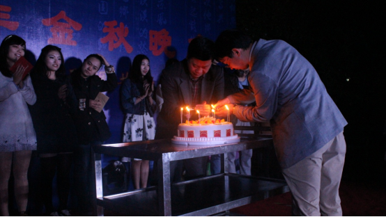 游戏环节,刚刚加盟光华法学院周淳和Christina老师与同学们共同参与了“无敌风火轮”游戏 ,两位老师以金秋舞会为平台首次与同学们见面,正式加入之江大家庭,源源不断加入的青年教师将给光华法学院注入新的活力。尔后的“集体生日趴”又将浓浓的师生情延续,吴勇敏老师、周江洪老师和吴卫华老师上台为大家点燃了生日蜡烛,而寿星代表郑观老师在生日趴上精心准备的英文版本“说句心里话”不觉让人耳目一新,赢得了大家阵阵喝彩和掌声。贴心的贺卡、美味的蛋糕让大家感受到来自学院的关心与家的温馨。