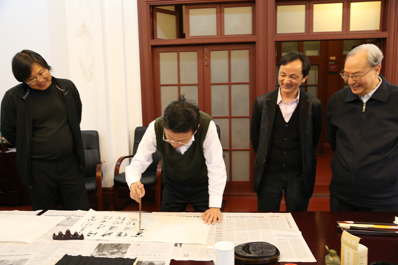 阮大仁先生追溯起阮氏家族与法学院的一段渊源,对学院的发展表示充分的肯定,阮先生鼓励学院学子积极向学,不断求索。对书法颇有造诣的阮先生还与在座的老师们交流了书法艺术心得,并现场挥毫泼墨为这段渊源书笔留念。