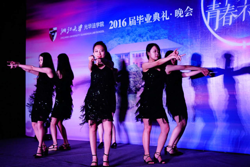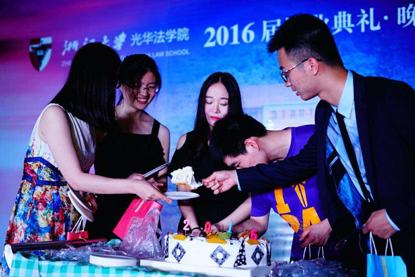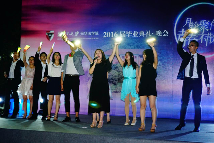 当晚19:30,毕业晚会正式开始,浙江大学光华法学院院长朱新力,学院党委书记、之江校区管委会主任、党工委书记张永华,党委副书记吴勇敏,副院长周江洪,院长助理郑磊,优秀校友代表章靖忠律师,学院陈信勇、翁里、王凌�、王钰、郑观等教师,团委书记李冬雪、团委副书记王书剑到晚会现场与毕业生庆祝。