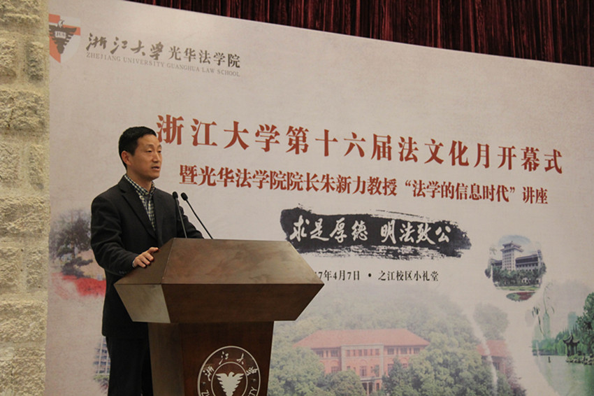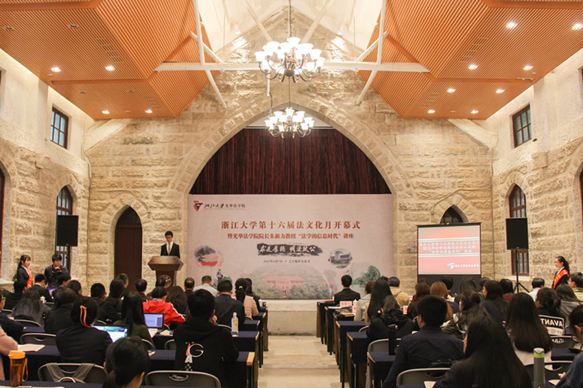 春雨初歇,山色空蒙。2017年4月7日下午14:00,浙江大学第十六届法文化月开幕式暨光华法学院院长朱新力教授“法学的信息时代”专题讲座在之江校区小礼堂隆重举行。