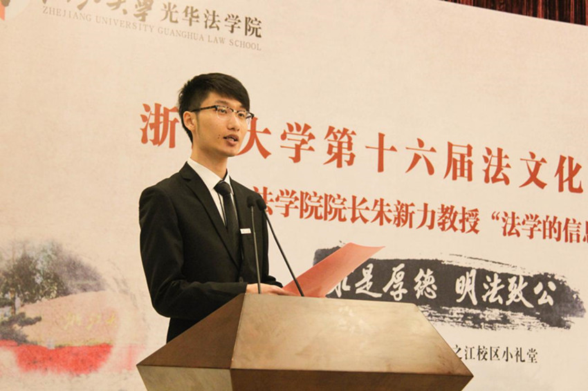 开幕式伊始,浙江大学第十六届法文化月组委会代表、光华法学院学生会主席赵赫为大家介绍了本届法文化月的具体安排。赵赫提到了十八大以来我国在法治建设之路上走过的历程和取得的成绩,并指出在这一背景下,浙江大学法文化月作为首批入选浙江大学院系优秀文化成果的品牌活动,“上承依法治国的伟大事业,下合求是创新的浙大情怀”,以丰富多彩的活动形式为校园法律文化建设塑造了良好环境。结合浙江大学一百二十周年校庆,在接下来的一个多月里,法文化月活动将围绕“和谐普法篇”、“情满校园篇”、“学术发展篇”以及“承文兴体篇”四个篇章展开,真正做到跨年级、跨领域、跨形式、跨地域,为母校一百二十周年诞辰献礼。