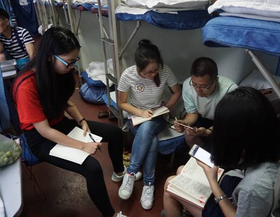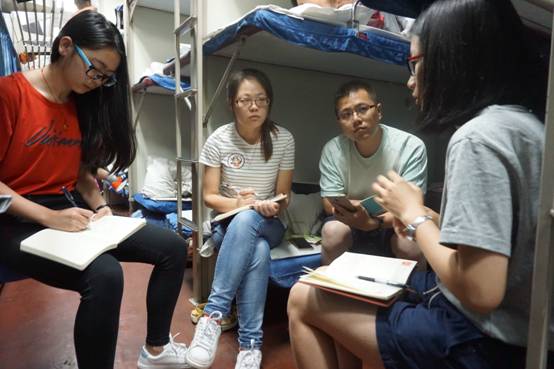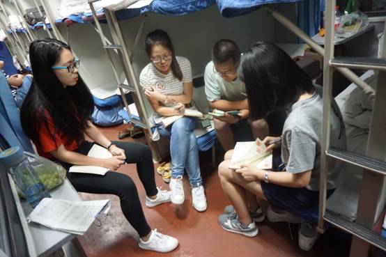 2017年7月23日下午,在从成都开往西昌的T8865次列车的车厢里,光华法学院2017年暑期赴昭觉社会实践团队临时党支部召开了成立后的第一次党员大会。本次党员大会由支部书记陈相老师主持,支部党员余雅蓉、赖力和刘玲参加,入党积极分子张伟恒同学列席旁听。
