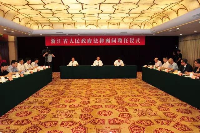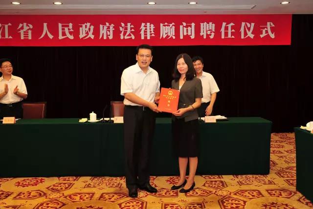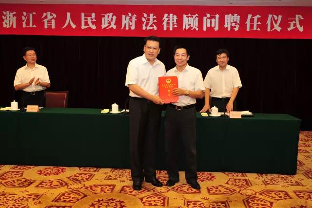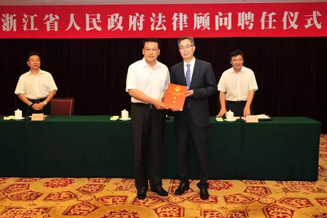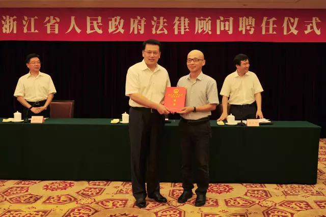 2017年8月23日下午,浙江省人民政府法律顾问聘任仪式在省人民大会堂举行。浙江省委副书记、省长袁家军,浙江省政府秘书长李卫宁参加仪式。