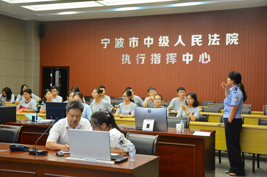 离开“智慧法院区”,实践团队跟随张书记前往宁波中级法院的执行指挥中心参观。执行指挥中心的负责人徐处长向大家介绍:法院加强移动执行能力,提高执行响应速度,必须要依托信息技术手段,建立相应的执行指挥体系。在此期间,她还向大家展示了浙江法院收结案时事监控平台,并强调:借用云数据的力量是司法体制改革的重大方向,这方面的改革措施将会有很大的发展空间。