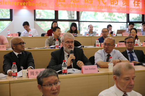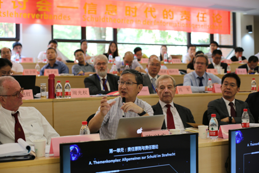 首先,由德国维尔兹堡大学希尔根多夫教授就“德国刑法中的责任”作主题报告。希尔根多夫教授认为意志自由是责任概念形成的基础,进而说明故意责任重于过失责任的理由。在此基础上介绍了德国刑法中的排除责任事由与阻却责任事由。