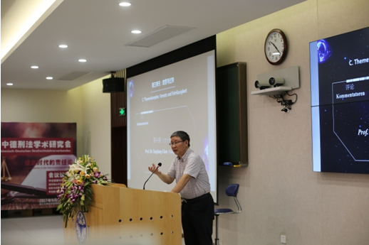 在报告环节结束之后,进入了评论阶段。在该阶段中,首先由来自德国科隆大学的魏根特教授对车浩教授的报告进行评论。魏根特教授对车浩教授所提出的三重分析视角表示赞同,并结合德国刑法的发展历程,阐述了学术与政治之间的关系,重申了体系性思考与问题性思考之间的张力关系,最后比较性考察了德国与中国在处理罪量要素上的异同点以及需要引起警觉的问题点。