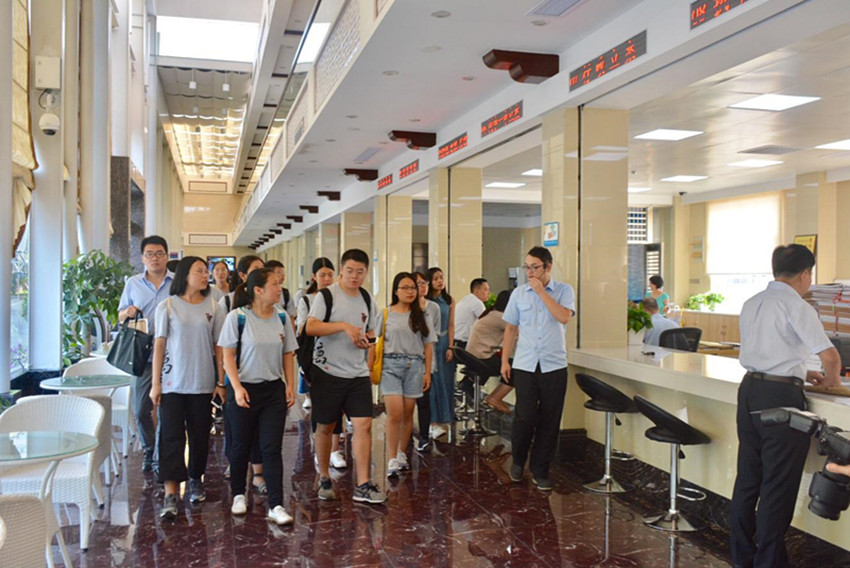 法院的陈书记与郑书记员热情地接待了实践团队,将大家带往此次中院之行的第一站——诉讼服务中心。在这里,我们了解到泉州法院首创的“跨域·连锁·直通”式诉讼服务平台。平台搭建于2015年1月12日,法院将其定位为全流程、全覆盖、全方位的系统性、综合性服务平台,为当事人提供涵盖立、审、执及其前后延伸的数十项家门口诉讼服务,让群众不需要为异地审理而长途奔波,实现“家门口诉讼”。在讲解员的讲解下,我们聆听了诉讼服务平台的logo寓意,先后参观了诉讼服务中心的立案、信访及判后答疑室,卷宗扫描中心以及信息集控中心。在参观中,我们切身体会到“跨域·连锁·直通”诉讼服务的人性化。
