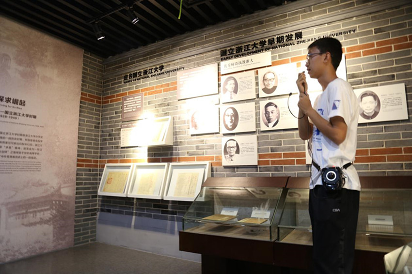 学院团委书记、研究生辅导员李冬雪老师引导新生们有序进入校史馆进行学习。校史馆内丰富的历史资料充分展示了浙江大学深厚的文化底蕴,给新生们进行了一次“精神洗礼”,现场气氛十分活跃,新生们与讲解员互动密切。讲解员首先按照求是书院时期、国立浙江大学时期、四校分治时期、新浙江大学时期等阶段对浙江大学的历史做了整体回顾,并对各个时期学校发展面临的问题、浙大人所作出的努力以及成就进行了介绍。讲解员特别介绍了浙大西迁的历史——在艰难的历史条件下仍能取得学术上的硕果,为国家、社会输送人才,更显示出了浙大人之精神。在讲解员声情并茂的解说中,参观很快接近了尾声。尽管参观时间并不太长,但浙大蕴含的历史积淀和人文精神已经深深的烙印在各位新生的心中。