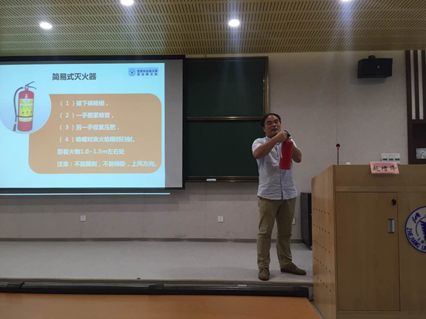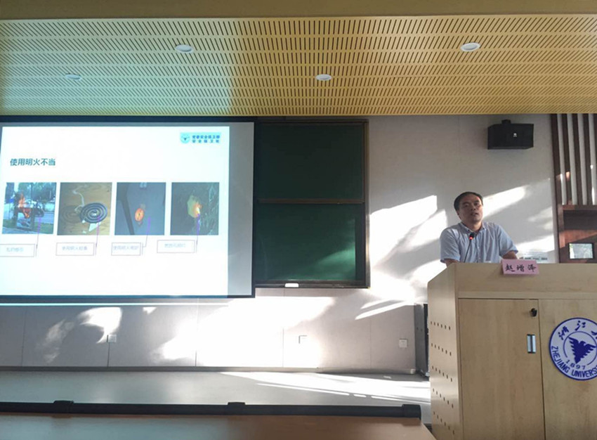 校安全保卫处赵增泽老师从“消防安全、治安安全、交通安全、国家安全”等四个方面为同学们展开安全教育,结合图片展示的方式,讲解许多在浙江大学真实发生的安全案例,向新生们科普了基本的校园安全常识,同时多次强调同学遇到安全问题时与校方和校保卫处保持联系。