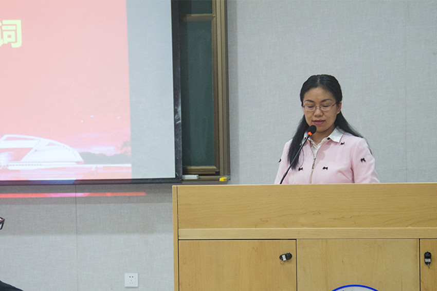 会议在雄壮的国歌声中拉开了序幕。大会第一阶段,学院党委副书记吴卫华老师代表学院党政领导致辞,她肯定了第十七届研究生会过去一年在服务广大同学、丰富校园文化生活等方面做出的重要贡献,勉励全体研究生亮出浙大学子的大气,铭记“求是厚德,明法致公”院训。吴卫华老师说,研究生会具有极强的组织能力和协调能力,既致力于向学院反馈同学们的诉求和愿景,也积极向同学们传达学院的政策与动向,是学院和研究生的桥梁。