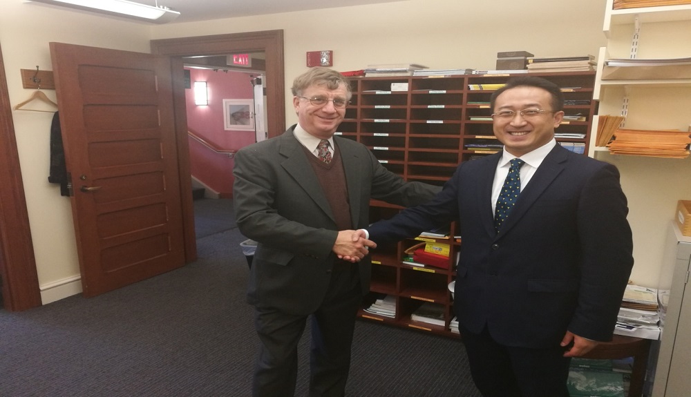 我院副院长赵骏教授与哈佛大学法学院副院长安守廉教授就两院学术研究、教育教学等方面合作进行了愉快地洽谈。此次访问哈佛大学法学院,促进了我院与世界顶级法学院交流互动,也为今后双方展开实质性的合作奠定了基础。