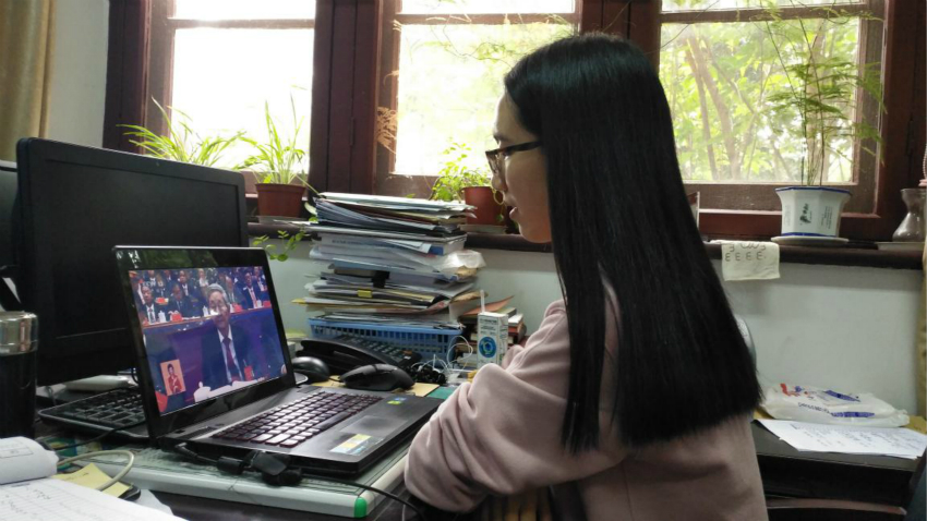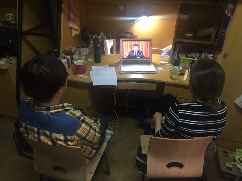 师生一起聆听习总书记做报告