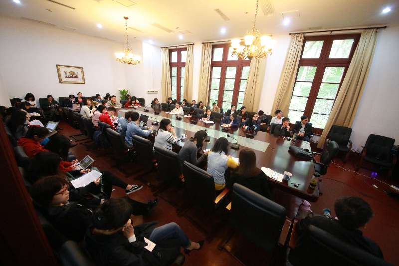 我院师生在主楼203教室一起学习习总书记报告