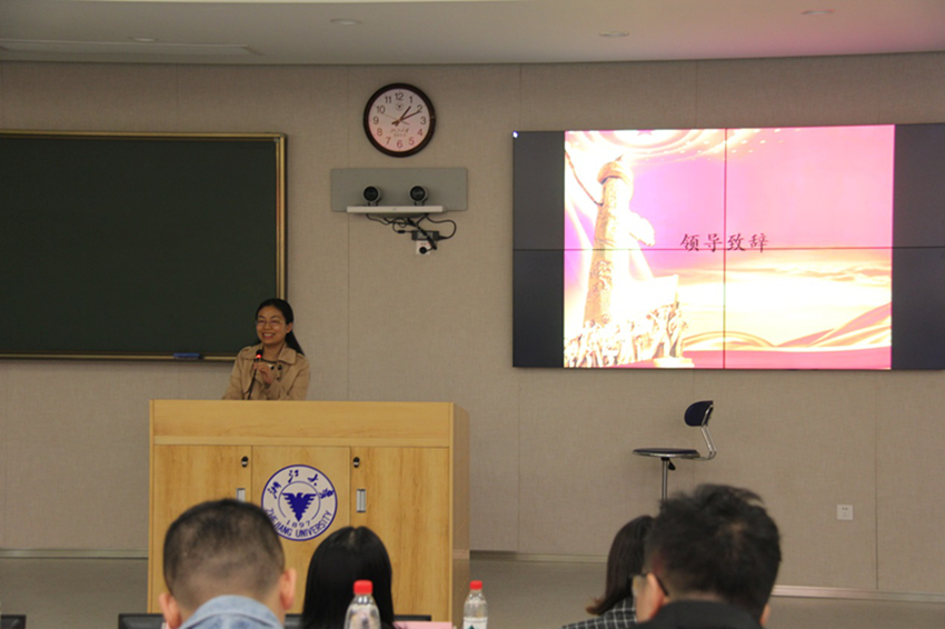 大会第一阶段,学院党委副书记、纪委书记吴卫华老师代表学院党委致辞。吴老师积极肯定了学院第十三届博士生会过去一年里在服务博士生群体、丰富校园文化生活等方面做出的重要贡献,并用凝练而又饱含深情的语言对博士生群体提出了新期望、对新一届博会工作提出了新要求。