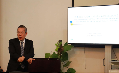 接着,张乃根教授做了《人类命运共同体——中国因素的国际法理念主题发言》,从“人类命运共同体”理念的提出、人类共同体的国际法现有理念、中国对国际法理念的新贡献、“人类命运共同体”的四大中国元素、“人类命运共同体”的和平观和实现永久和平的路径、“人类命运共同体”的包容观、“一带一路”倡议下的合作共赢、“人类命运共同体”的绿色观等方面对“人类命运共同体”这一理念进行详尽阐述。