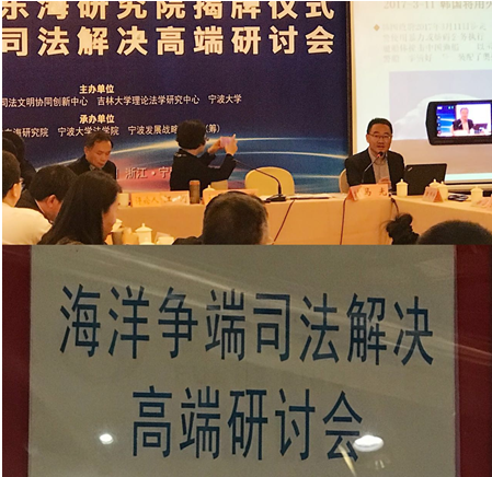 2017年11月18日-19日,由国家2011计划司法文明协同创新中心、吉林大学理论法学研究中心、宁波大学共同主办的“海洋争端司法解决高端研讨会”在宁波召开。我院马光副教授应邀参加研讨会,并做了以《我国的海洋划界与渔业纠纷》为题目的报告。